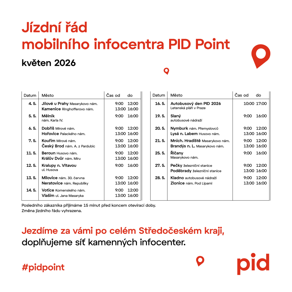Mobilní informační centrum PID Point: Jízdní řády na duben a květen
