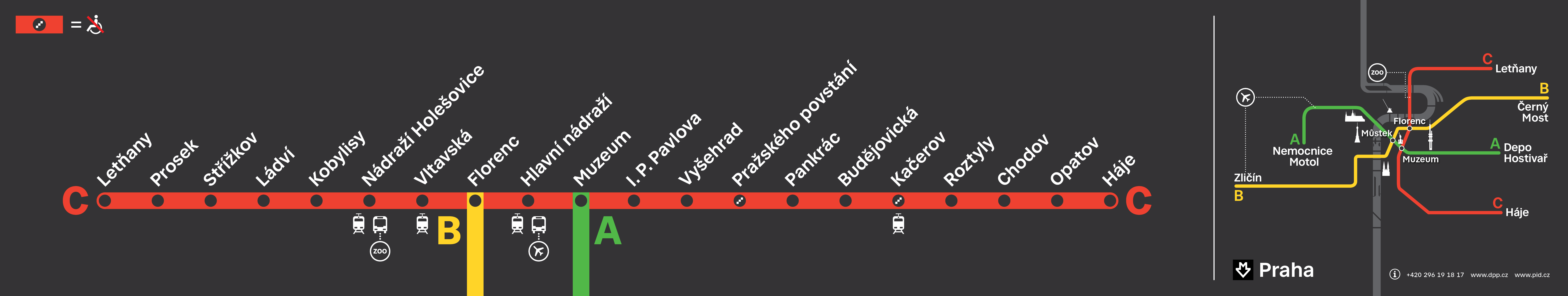 All metro lines are operated by Dopravní podnik hl. m. Prahy