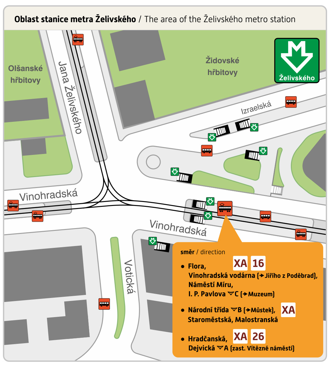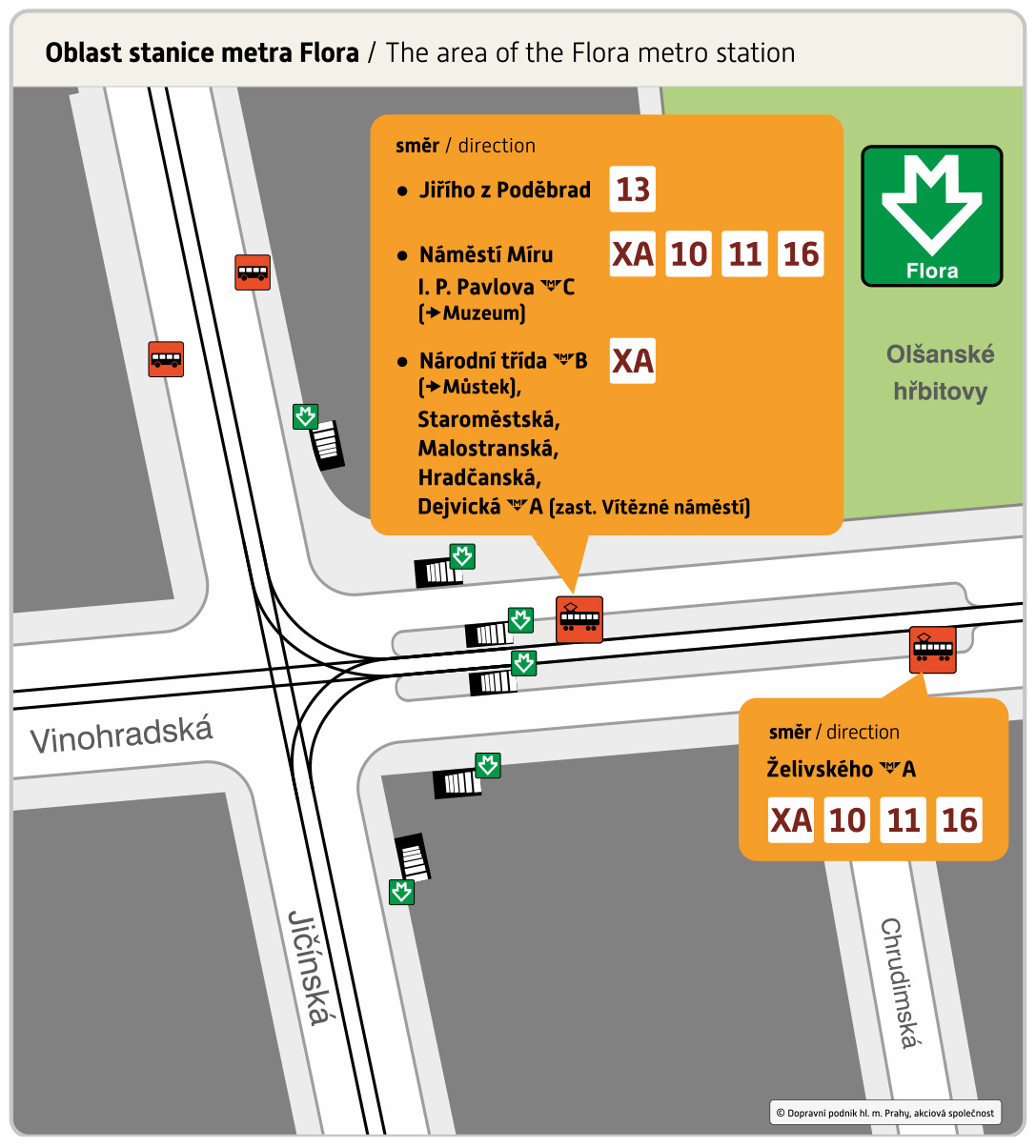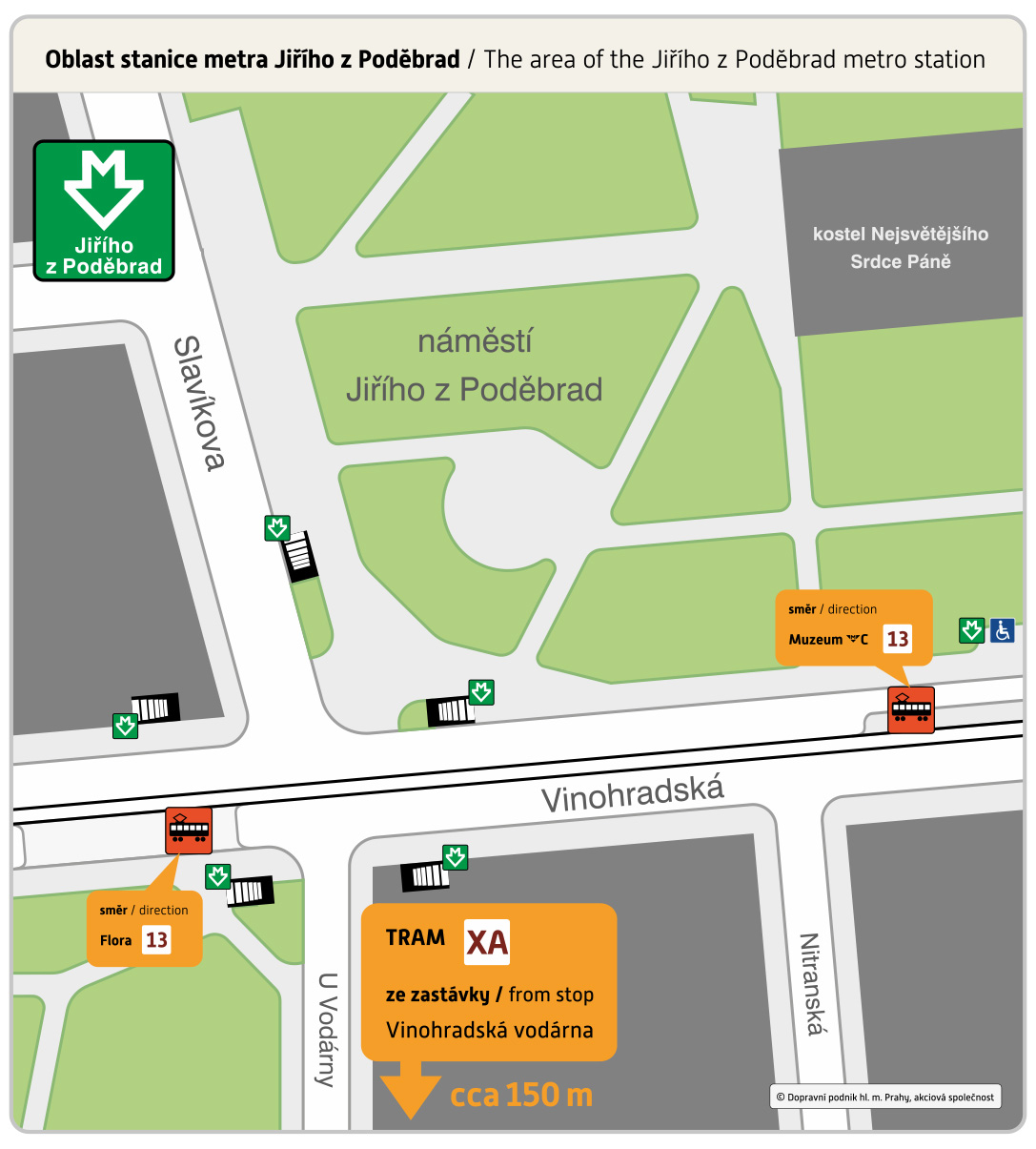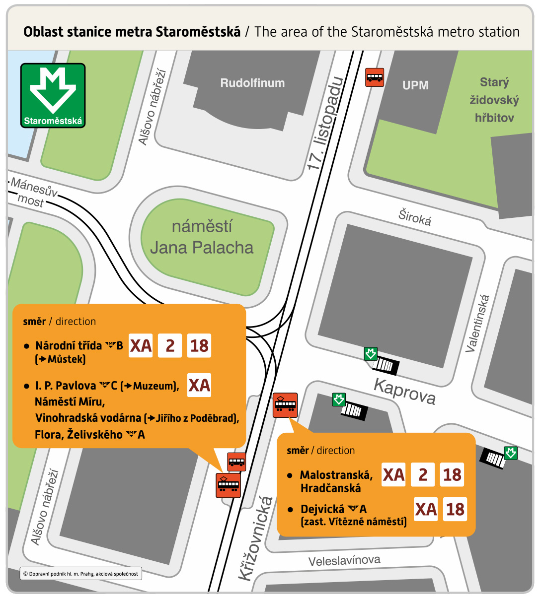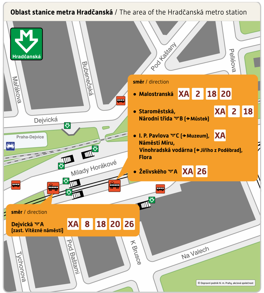 - V denním provozu je zavedena náhradní tramvajová doprava XA v trase NÁDRAŽÍ PODBABA – Vítězné náměstí – Hradčanská – Malostranská – Staroměstská – Národní třída – Karlovo náměstí – I. P. Pavlova – Náměstí Míru – Vinohradská vodárna – Flora – Želivského – NOVÉ STRAŠNICE.