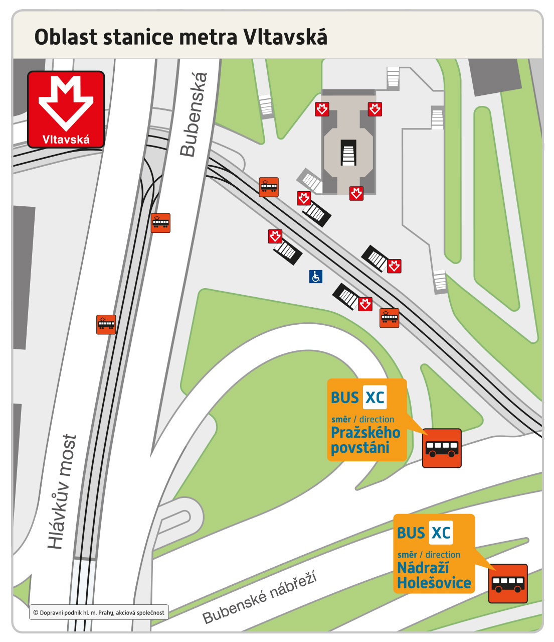 - Vltavská: na Bubenském nábřeží v zastávce autobusové linky číslo 905 směr Jižní Město