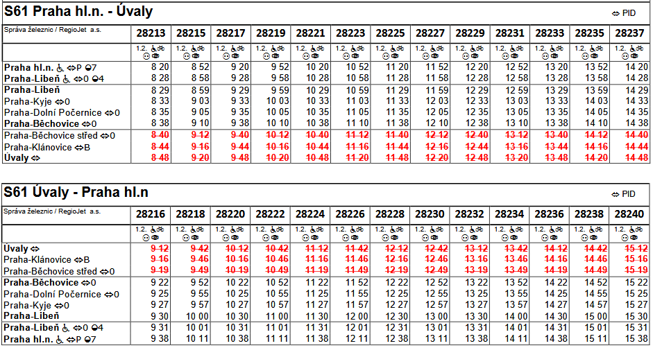 • Opatření se netýká vlaku Os 28214 vyjíždějícího z Úval v 8:42 a vlaku Os 28239 odjíždějícího z Běchovic směr Úvaly v 15:10.