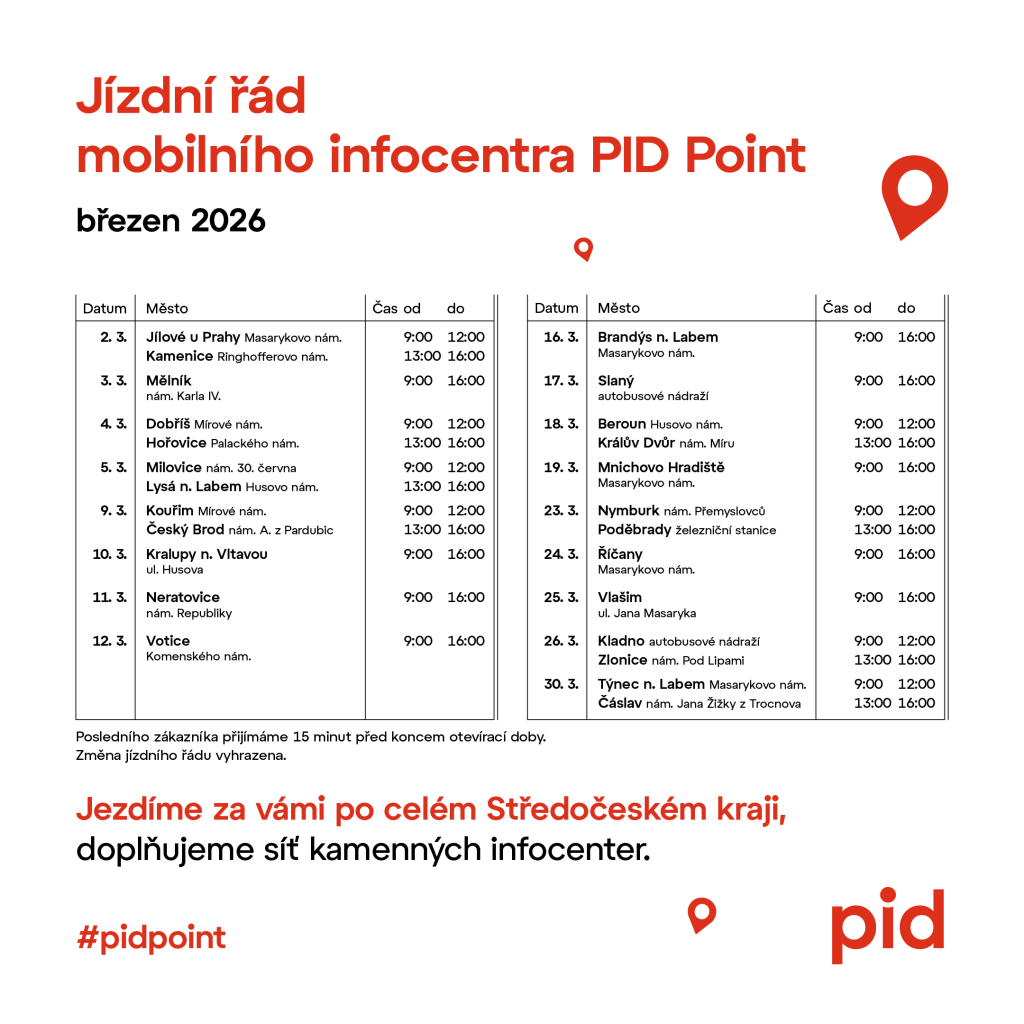 Mobilní informační centrum PID Point: Jízdní řády na únor a březen