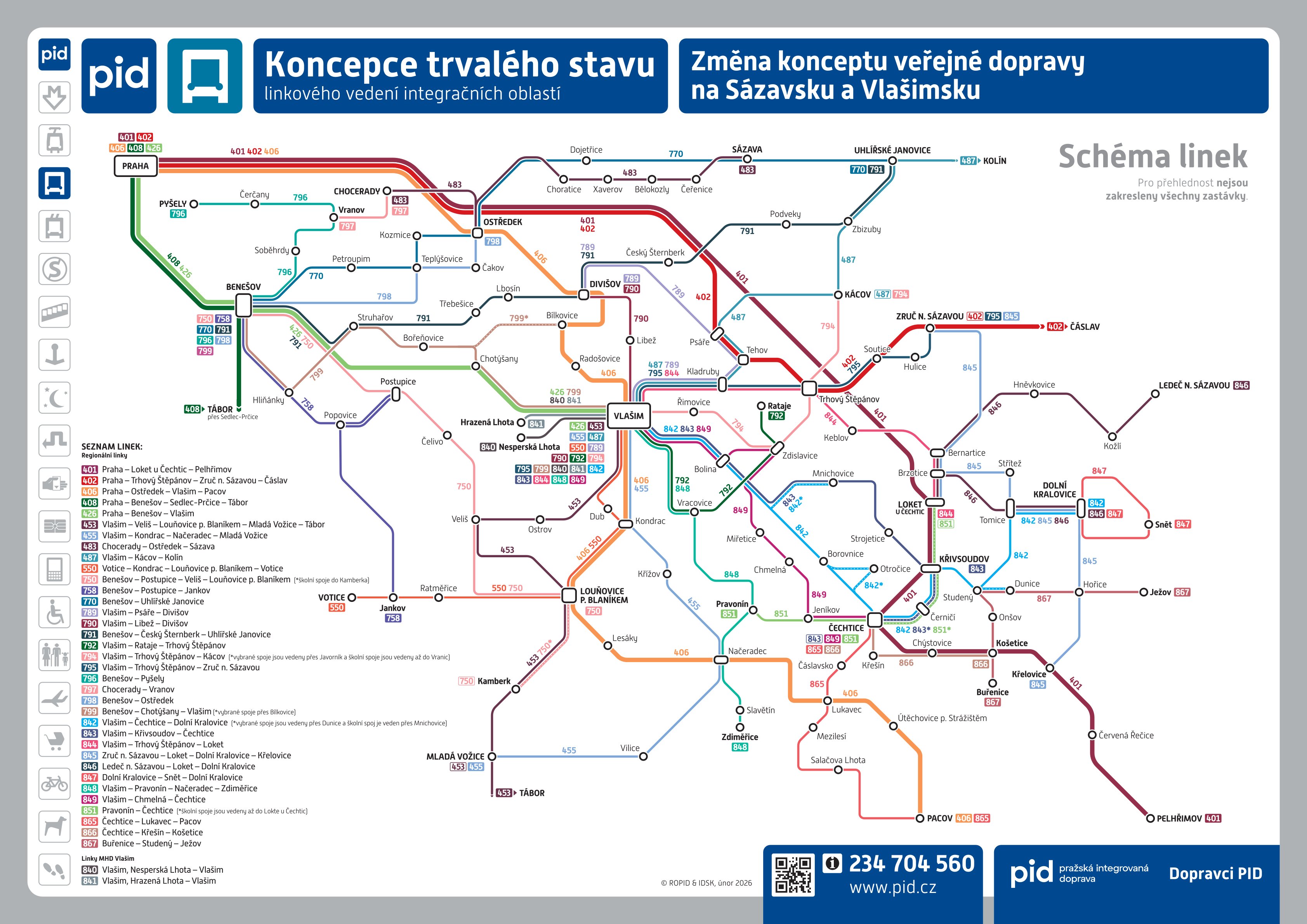 Společně s Krajem Vysočina, který od 2. 8. 2026 spouští nový dopravní koncept na Humplecku a Pelhřimovsku, jsme pro cestující připravili nový koncept mezikrajské dopravy v oblasti Čechticka, Pacovska a Ledečska. V této souvislosti připravilo IDSK také nový koncept dopravy v provozních oblastech Sázavsko a Vlašimsko, který vyhodnocuje změny provedené v rámci integrace obou oblastí do PID.