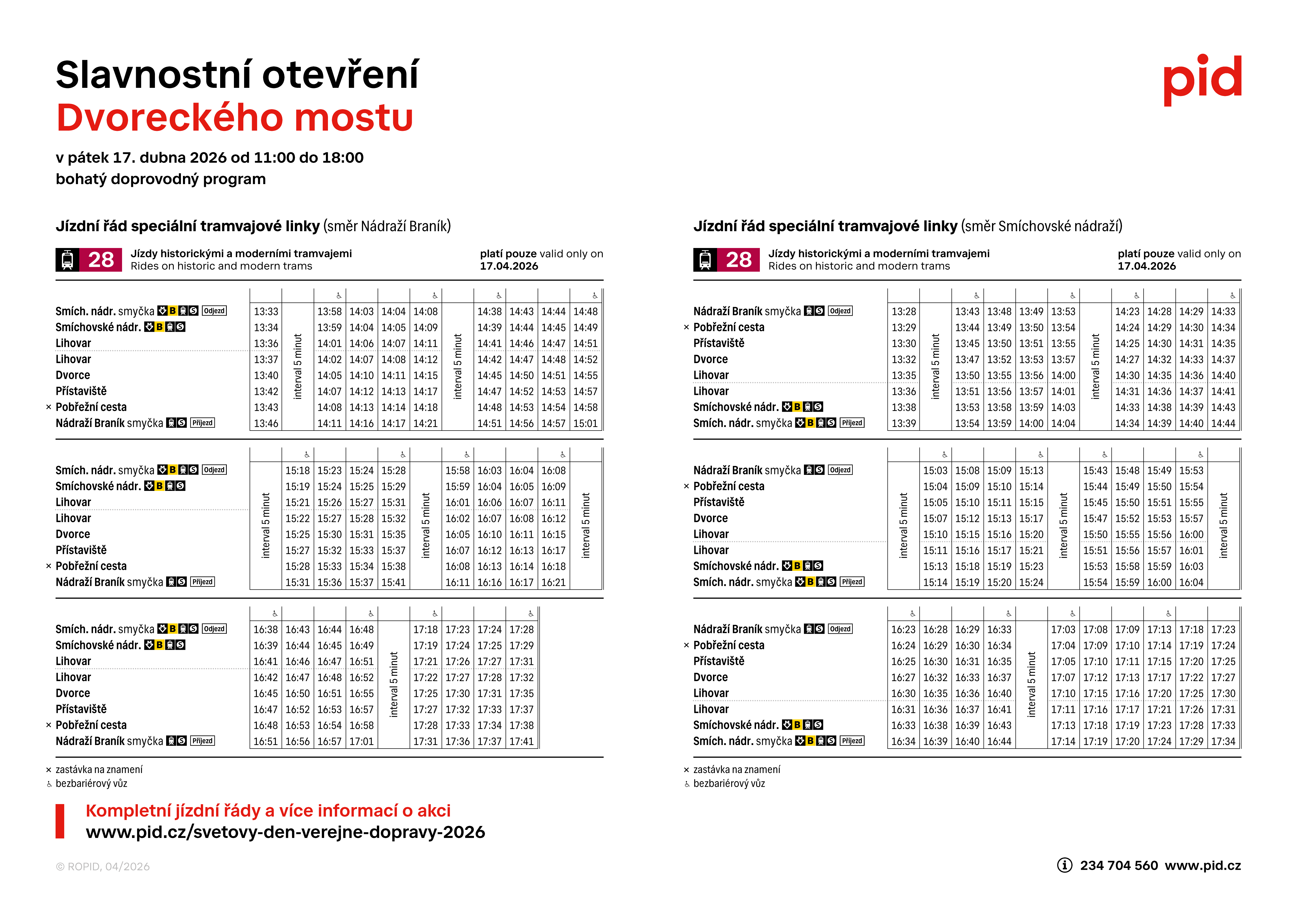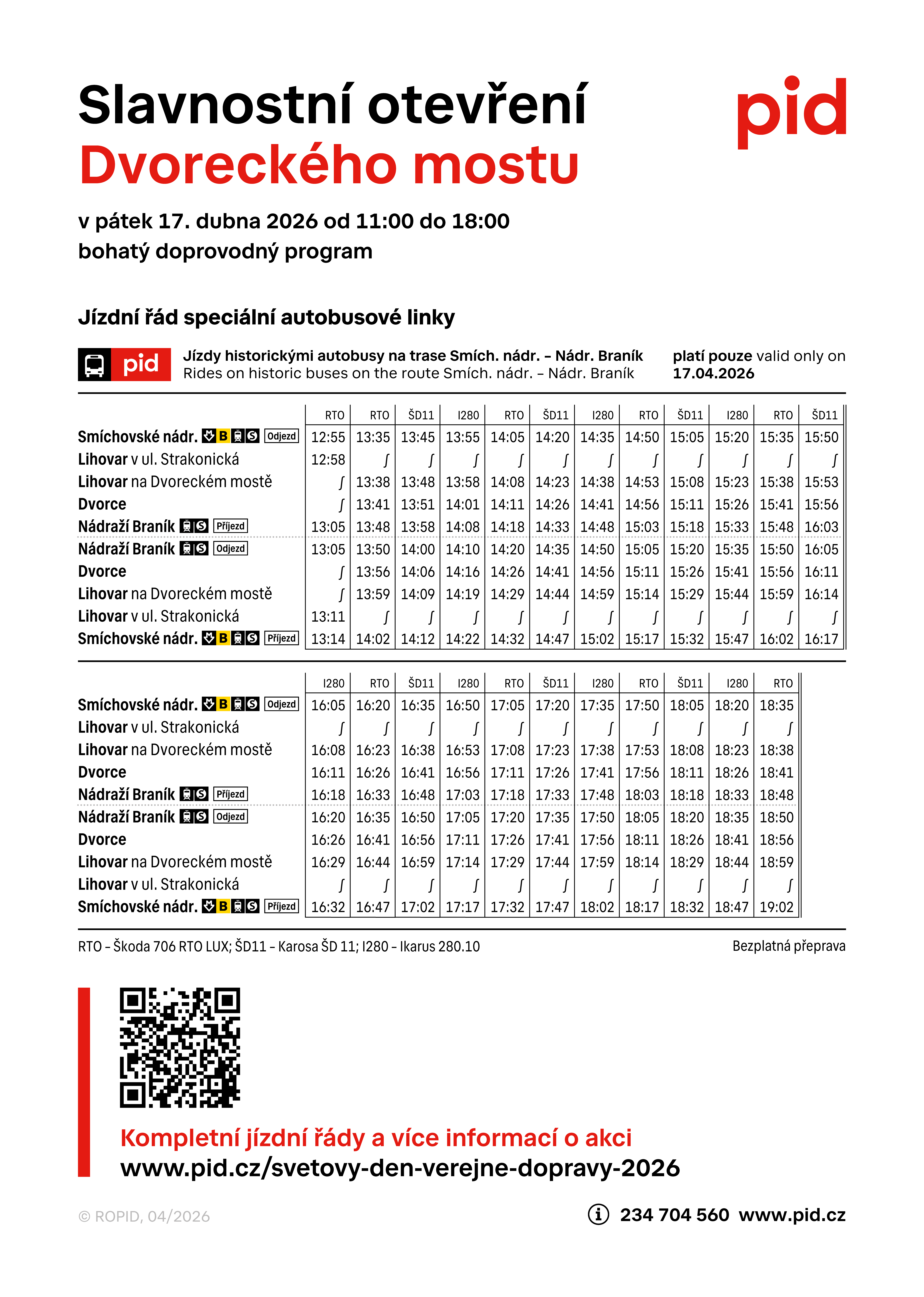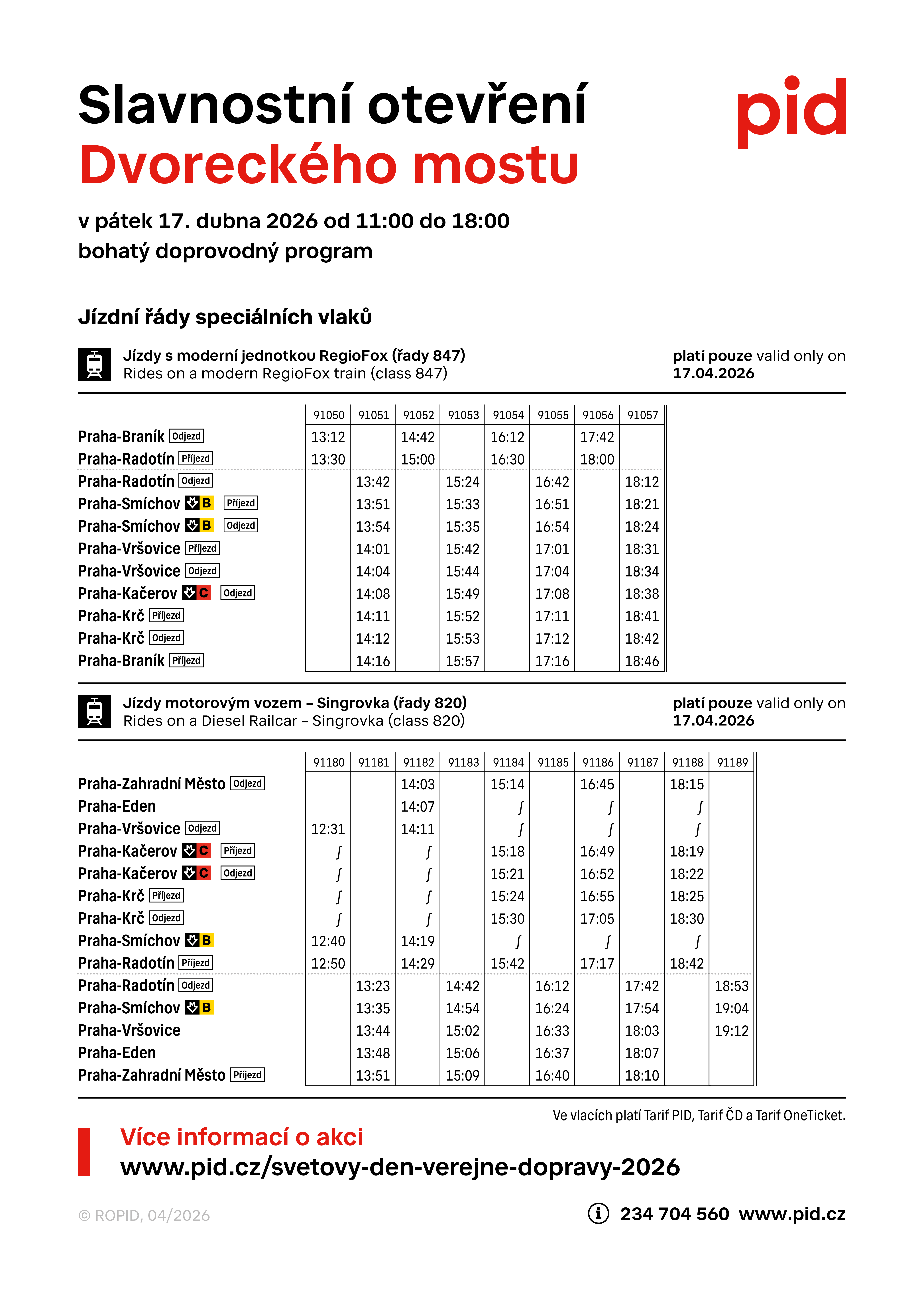 V pátek 17. 4. slavíme Světový den veřejné dopravy. V regionu potěšíme dárkem, v Praze se oslavy spojí s otevřením Dvoreckého mostu