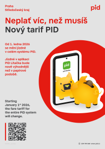 Od 1. ledna 2026 začne platit nový Tarif Pražské integrované dopravy (PID). Změny se dotknou především cen jízdného – dojde ke zvýšení cen jízdenek pro jednotlivou jízdu v Praze a vnějších pásmech a ve vnějších tarifních pásmech i předplatních kuponů. Na území Prahy zůstávají ceny předplatného beze změny.