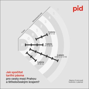 Pozor! Změna výpočtu pásem se vztahuje pouze na cestující, kteří si kupují jednotlivé jízdné z/do vnějších pásem (1-13), jež zahrnuje i jízdu v MHD Praha (pásmo P). Pro cestující, kteří si kupují jízdné jen pro MHD Praha, nebo jednotlivé jízdné z/do vnějších pásem do/z dojezdových pásem 0 a/nebo B, se výpočet pásem nemění.
