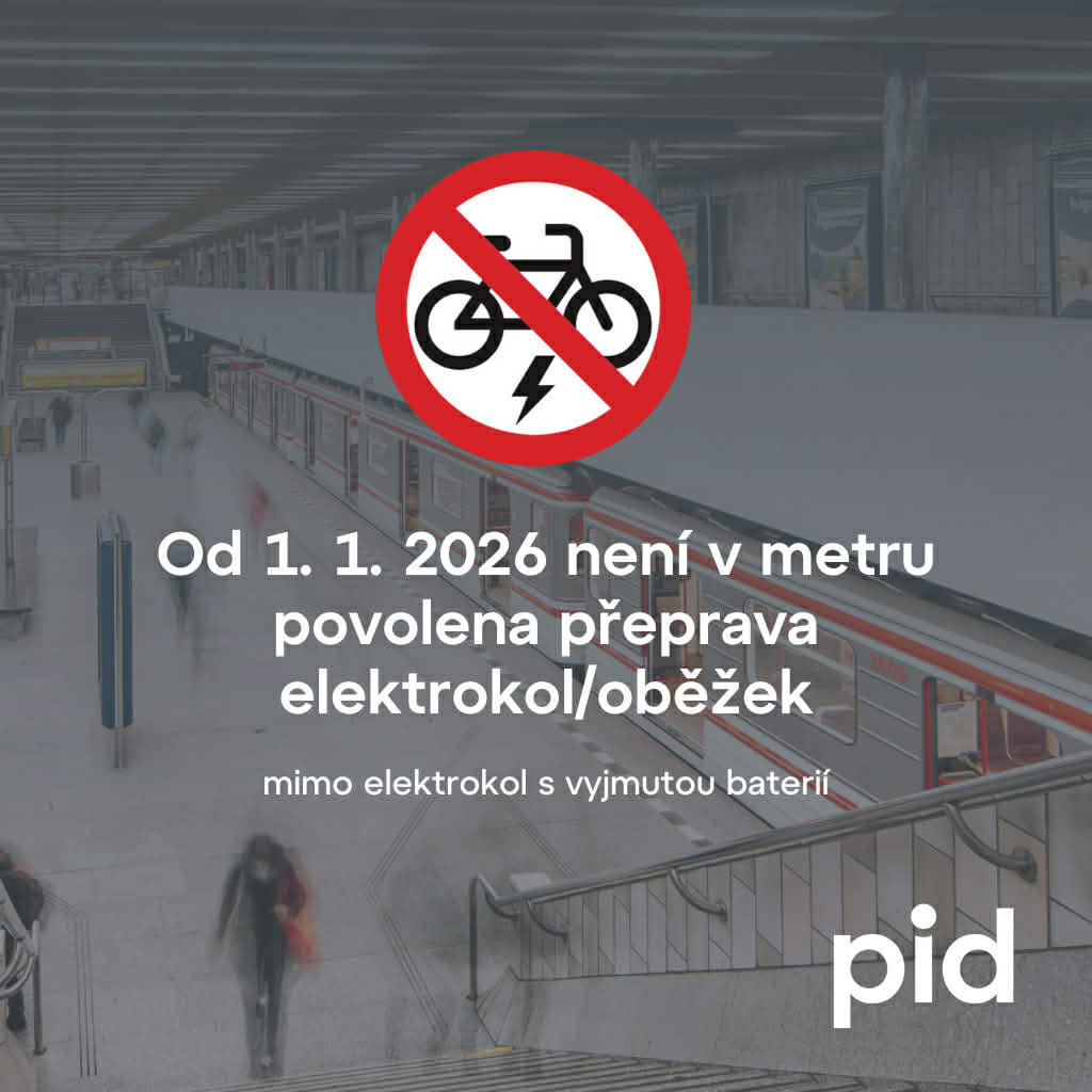 S ohledem na maximální důraz na bezpečnost provozu bude od 1. ledna 2026 v metru (a v budoucnu i na lanové dráze na Petřín) zakázána přeprava elektrokol, elektrokoloběžek i dalších alternativních vozítek s elektropohonem. Výjimku budou mít elektrokola s vyjmutou baterií.