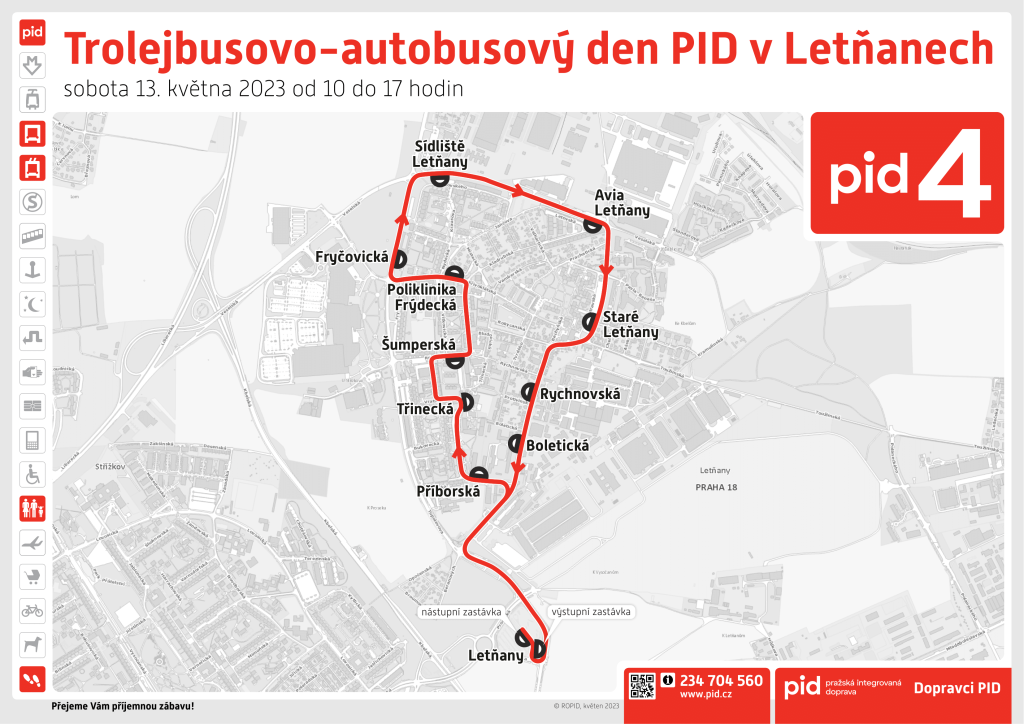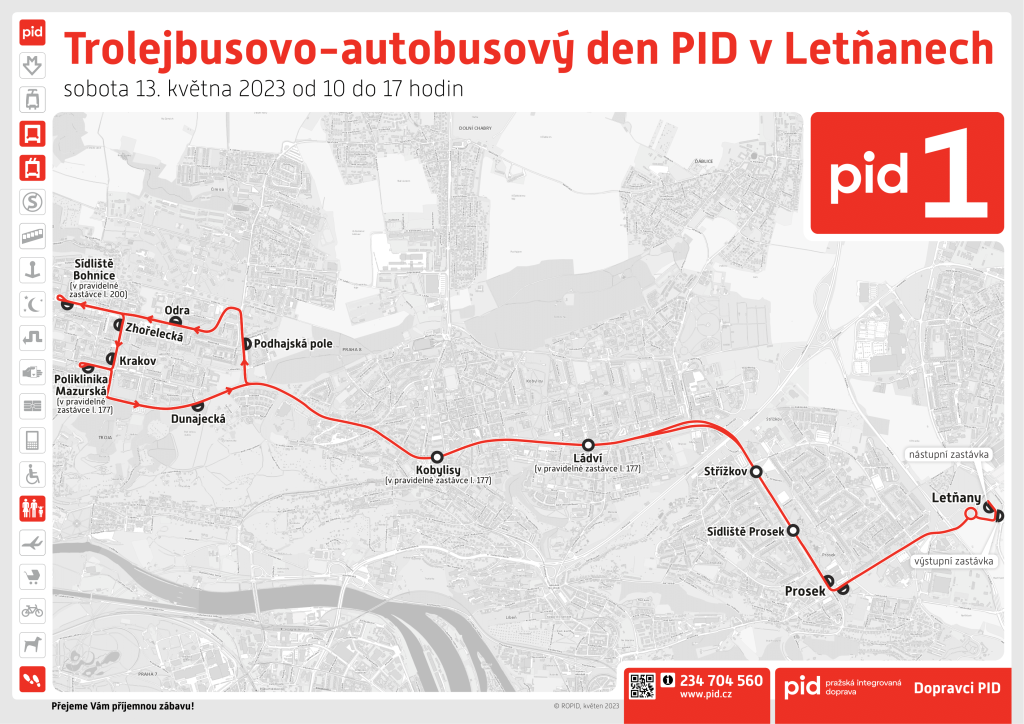 Vydejte se spolu s námi na letošní druhou dopravní akci Pražské integrované dopravy! V sobotu 13. května 2023 se od 10 do 17 hodin v terminálu u stanice metra C Letňany uskuteční již 6. ročník oblíbeného Autobusového dne PID, který bude letos nově obohacen o posílený provoz trolejbusů na lince 58. Těšit se můžete na tradiční statickou výstavu autobusů zapojených do systému PID, komentované prohlídky koordinačního dispečinku nebo jízdy nejen historickými autobusy po okolí Letňan. V rámci doprovodného programu Vám ukážeme, jak se bezpečně pohybovat v rámci silničního provozu a představíme tradiční infostánky PID, DPP a ČD. V neposlední řadě se můžete těšit i na oblíbený prodejní stan Locomotif s uměleckým stánkem MatysArt nebo na novou komunikační kampaň Magistrátu hlavního města Prahy.