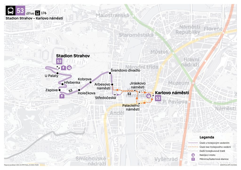Karlovo náměstí – Švandovo divadlo – Holečkova – Stadion Strahov
