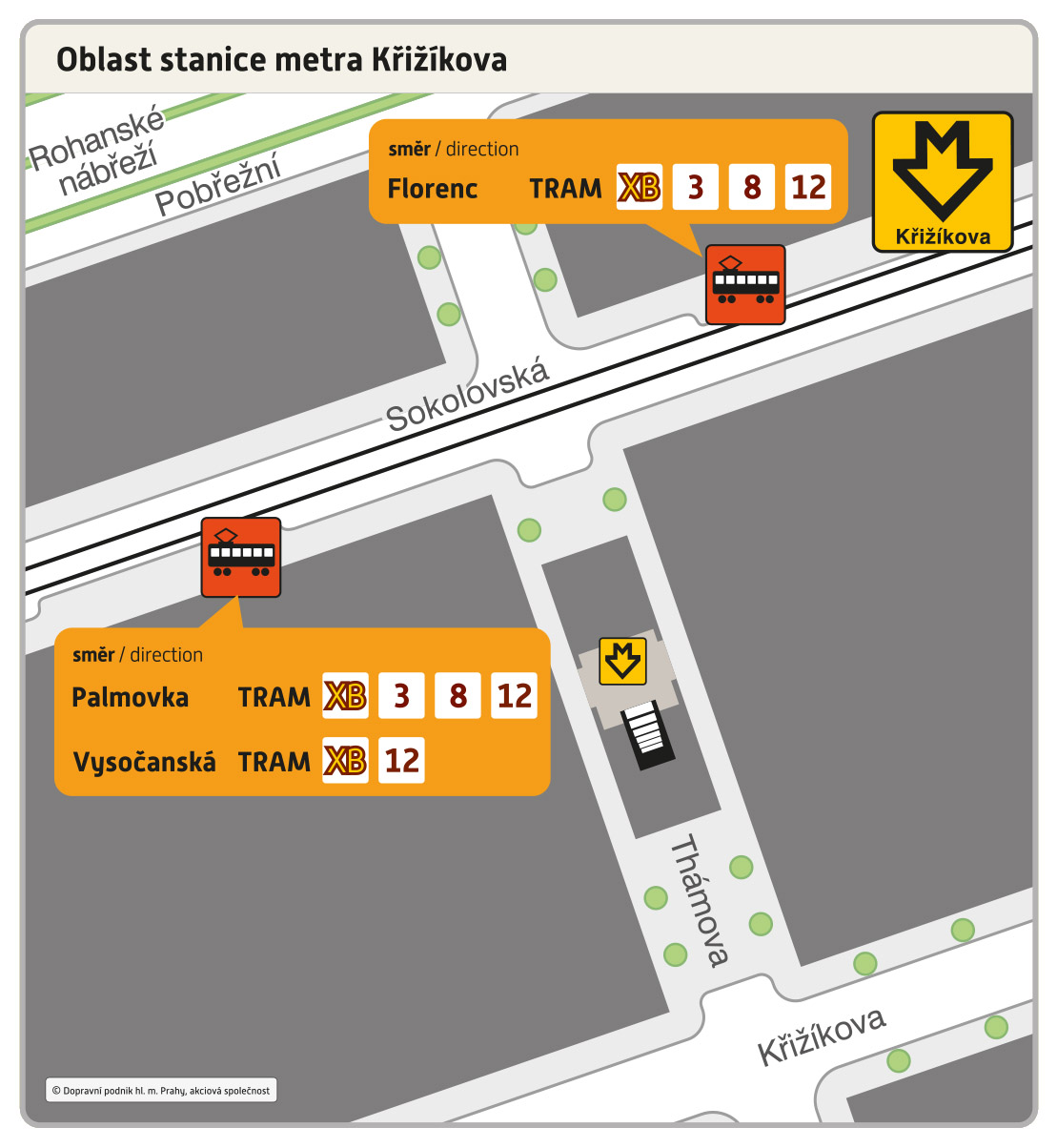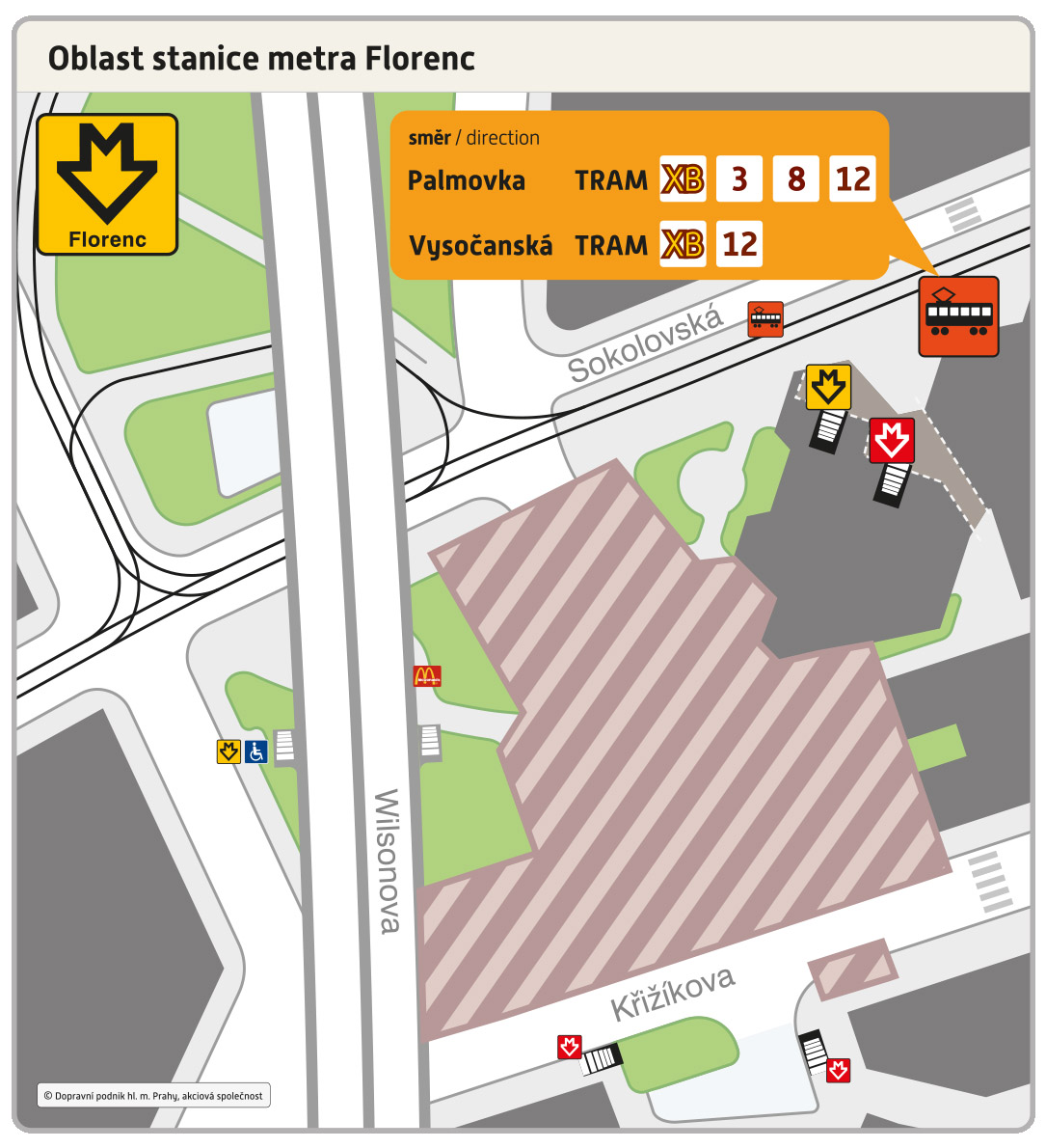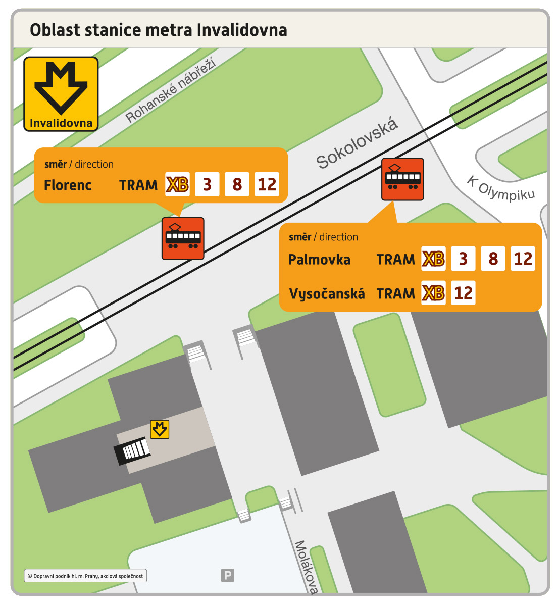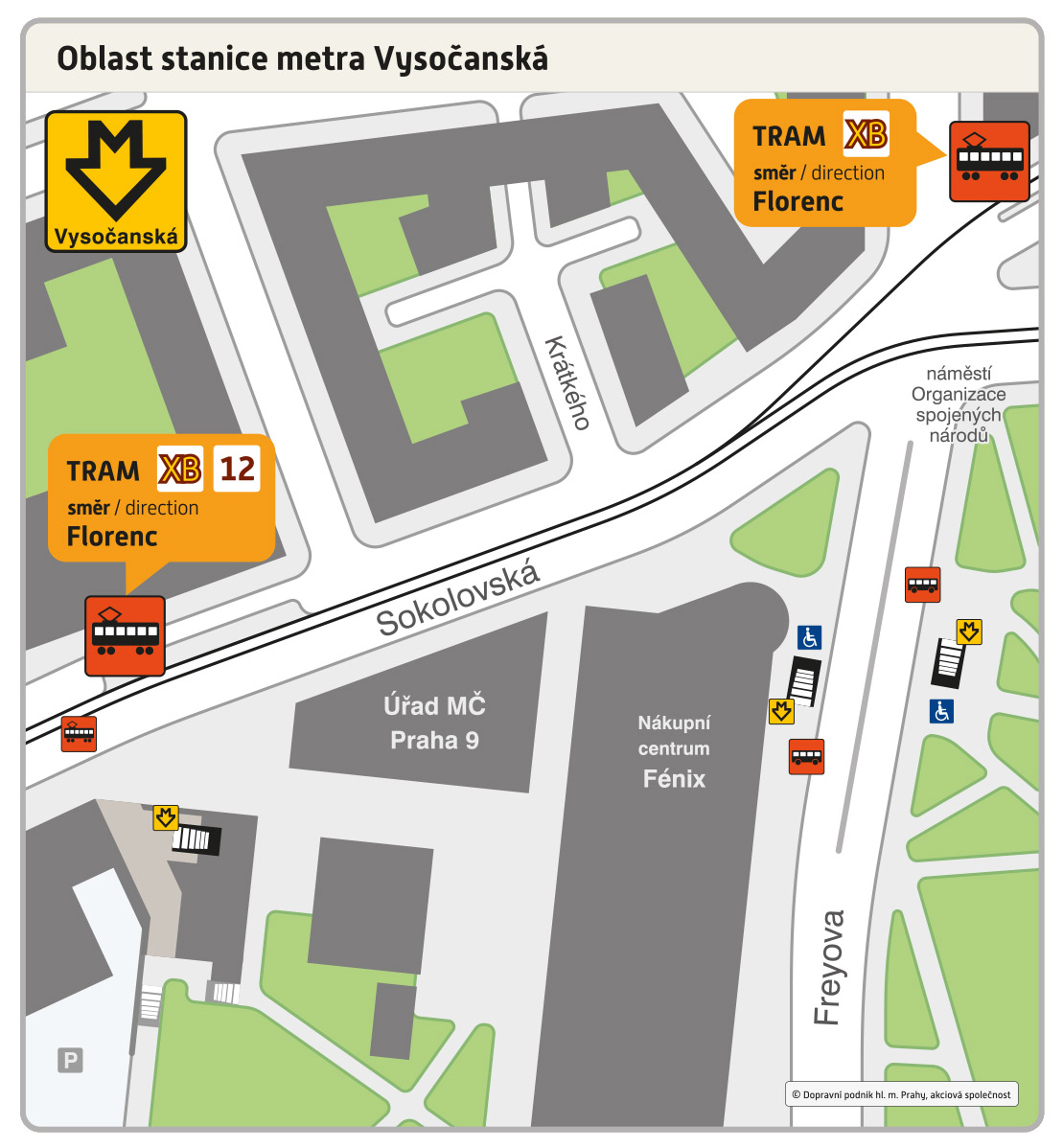 - XB FLORENC – Křižíkova – Invalidovna – Palmovka – Poliklinika Vysočany – Nádraží Vysočany – VYSOČANSKÁ