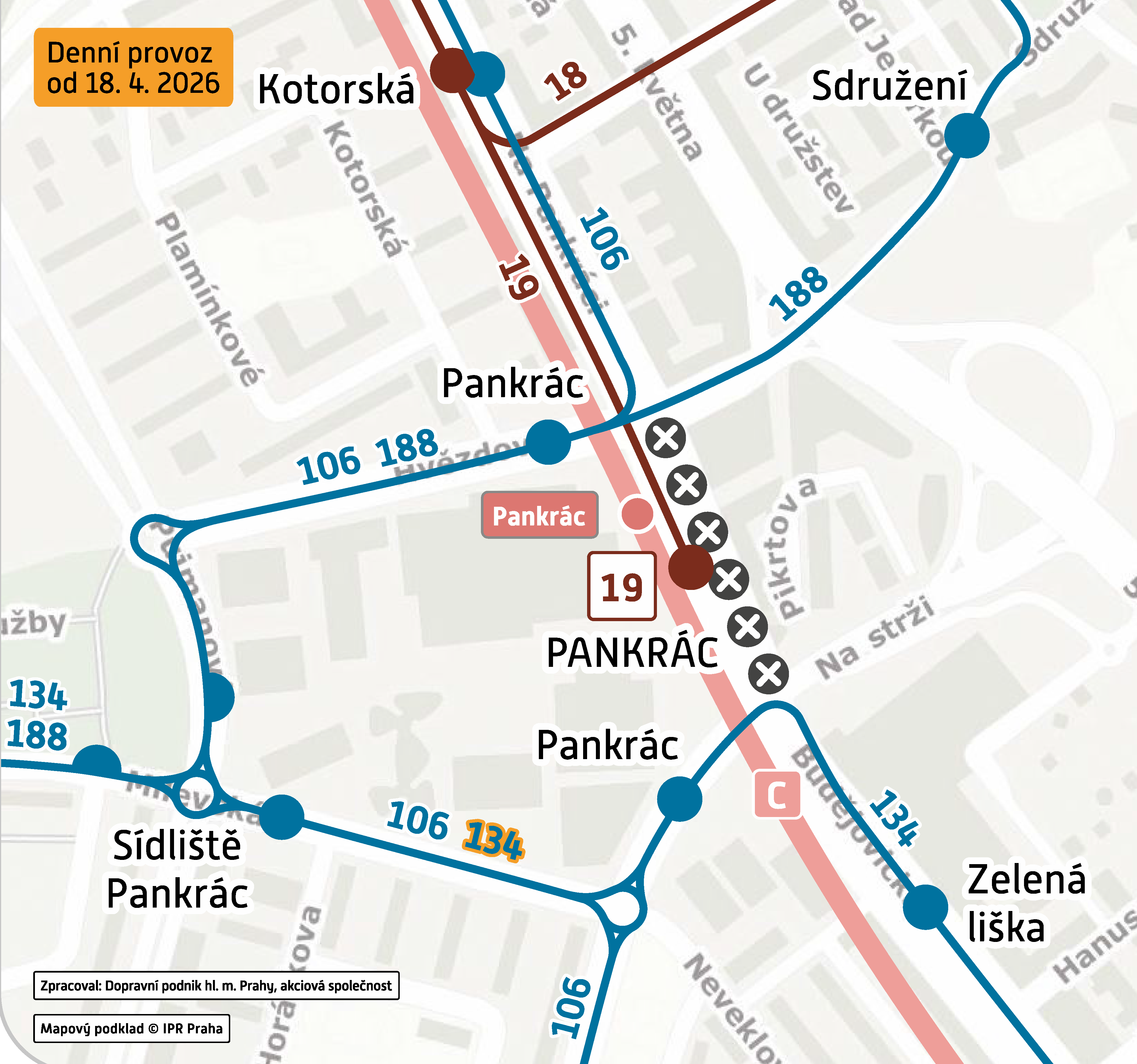 - Ve směru Dvorce se přemísťuje zastávka Pankrác z ulice Hvězdovy do ulice Na Strži, přibližně 50 metrů za křižovatku s ulicí Milevskou.