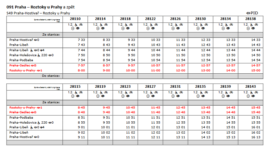 Vlaky jsou v úseku Roztoky u Prahy – Praha-Podbaba odřeknuty.