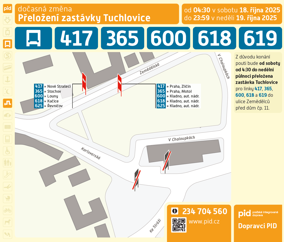 Více informací o provozu může poskytnout zákaznická linka PID na čísle 234 704 560.
