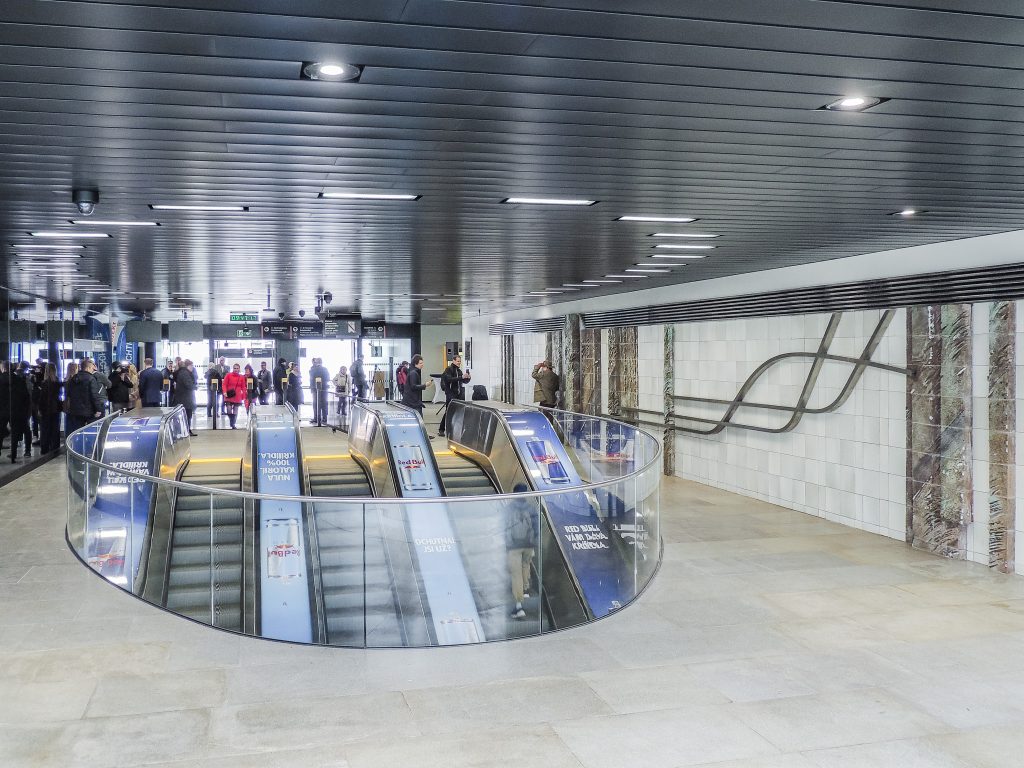 Vnitřní fasáda ve vestibulu stanice naproti stávajícímu uměleckému dílu je nově osazena dvouvrstvým bezpečnostním sklem s vysoce reflexní úpravou. Touto instalací bylo docíleno zdvojení a zrcadlení původního uměleckého díla, což byl záměr architekta interiéru vestibulu, jejímž autorem je METROPROJEKT Praha.